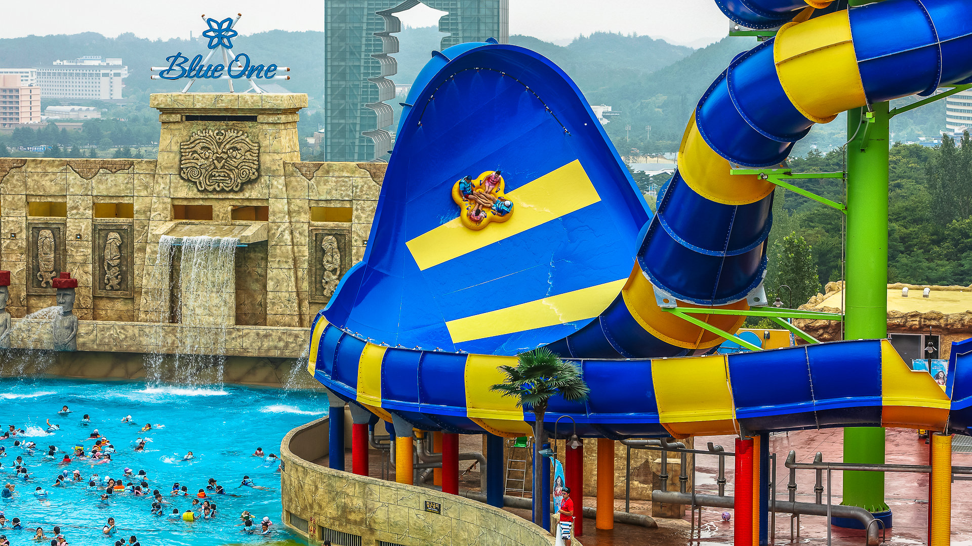 블루원 워터파크는 국내최고 2.6m 높이의 스톰웨이브(파도풀)의 웨이브존, 266m의 짜릿한 래프팅 코스의 토렌트존과 야외 스파 및 실내 스파와 슬라이드의 4계절 내내 즐길 수 있는 포시즌존이 있어 가족은 물론 다양한 연령층이 마음 놓고 즐길 수 있는 국내 물놀이 시설입니다. 그저 슬라이드를 타는 것만이 아닌 공중을 날 수 있는 플라잉폭스, 캐논볼의 신규 어트랙션의 설치로 더 신나게 즐길 수 있습니다.